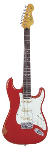 !9# Vintage Guitars Icon V6 Electric Guitar - Distressed Firenze Red